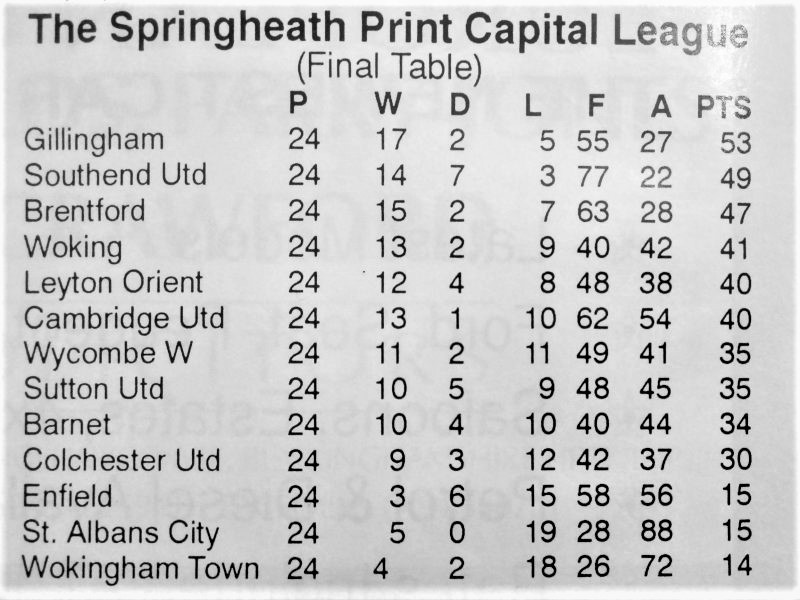Wed 29 Sep Wokingham Town H W 2-1 Norman, Greene