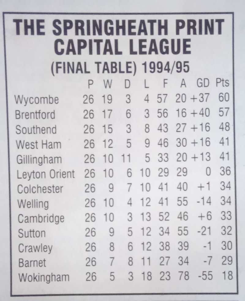 20 Apr 95 Wokingham Town A W 7-2 Clark 3, Langford, Titterton