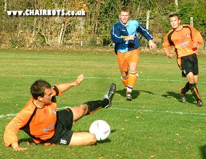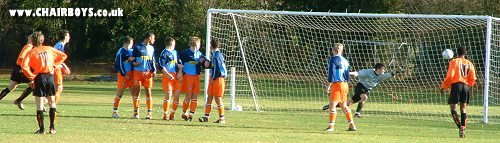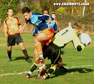 ![]() Third Year Scholar Stuart Hole lets the Colchester 'keeper know he's there. |