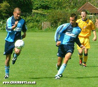 Newcomer Lee Parrach takes control versus Gillingham with Steven Gregory looking on.