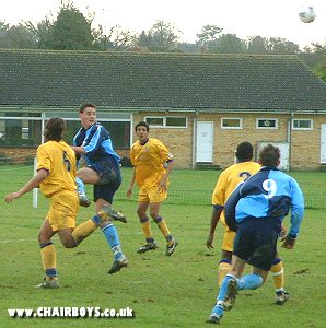Stuart Hole rises for a header against The Gills.