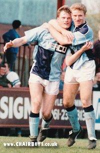 What the Wanderers players said after the game: Glyn Creaser: Nervous as hell. Shed a few tears at end, I must admit. I’m gutted: no I’m not, what am I talking about? That’s a load of rot. Overwhelmed. Best day of my career full stop. Simon Stapleton: I’m going to get absolutely slaughtered tonight, absolutely lacerated. I never thought we’d lost it, it was just a matter of ticking the clock. We just had to keep battling. I never thought we were going to lose because I never thought they were going to score. All I know is we’re going to Wembley and they’re not. Keith Scott: I picked up the ball, I said I was taking it and I took it. When we scored, it was obvious they needed two to take it into extra time but I think we took the wind out their sails when Westy scored. Very happy at half time, because they’ve always got to score. And if we battled like we did in the first half, and we fancied our chances to score, and we did score and now we’re going to have lots and lots to drink.Andy Robinson: Yes, pretty nervous. I didn’t feel like they looked like scoring. I thought Scotty did well up front. Just a few times (played at Wembley). A long time ago for schoolboys. I suppose it’s a bit like a second home. Keith Ryan: We all played really well, and I’m just glad to be there. At half time, it was going well, 0-0 obviously, and I just think from then on, we just had to battle 100 per cent. It didn’t have to be pretty as long as we got the result. All it took was a big battle. As long as everyone battled their hardest, we knew we were there. Andy Kerr: He (McKenna) was a handful but it proved what he was getting up to because he ended up getting sent off. He deserved to get what he got. Glyn did brilliant, John did brilliant as well. Wembley....I’ve just got to get that in. There were bits bobbling around but we got behind them and forced them to knock it over and wide so we had no worries at all really. Stuart Cash: Brilliant. Best day of my career. He (Daws) didn’t cause me any problems really. He got a bit ratty at the end, but it’s not surprising when Wembley’s at stake. He came to me after and apologised. We’ll get down to Wycombe and have a session tonight. I’m pleased for the gaffer. The fans helped us win the game, like they were superb. They deserve all the praise they can get. They were brilliant. Dave Carroll: Pretty important (last week’s goal). Yeah, first of this year. Been a bit unlucky a few times. The highlight (of career) really. We really battled today. Matt Crossley: He (McKenna) didn’t come too far near me. I saw the linesman flagging and I told him you’re off. (Wembley?) I’ll be there next week for the League Cup I’m a Man. United fan. Simon Hutchinson: Brilliant. Good job he brought me down because it was on my left foot. Just brilliant to be part of it. Obviously, everyone wants to be part of it, but I was happy to get on there at the end of the day. Played there (at Wembley) for England schoolboys about three times so it’ll be nice to get back to the old place. Steve Guppy: Great result. We did what we had to do. Mark West: Someone got a flick on. It’s come over the geezer that was marking me and somehow I got a toe to it and it’s wrong footed the geezer on the line and slipped in the corner. Then I could do my Charlie George, 1971. Meanwhile, Wanderers Manager Martin O'Neil, speaking on the Monday after the game at Altrincham, said "The party night was excellent. There were quite a few hundred waiting at the football ground, and it’s been good news ever since. The people in the office are buzzing. The final whistle was a special moment. Westy’s goal: when that went over the line, that gave us breathing space as they then had to score three to knock us out on the day. And the defence was superb, but then, everyone was superb." Wanderers would have to wait a few days to find out their opponents in the final to be held on Saturday 11th May 1991 at Wembley Stadium - Witton Albion beat Kidderminster Harriers 4-3 to draw 4-4 on aggregate. It would be Harriers who won through to take on Wanderers with a 2-1 victory in the replay at Stafford on Monday 15th April 1991. Extended Picture Gallery>>> Saturday 11th May 1991 - Kidderminster v Wycombe - FA Trophy Final Preview >>> |