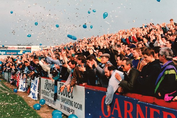Wanderers fans at the other end of the ground celebrate Mark West's goal Picture by and with thanks to Steve Peart - published for the first time for the 25th anniversary. |