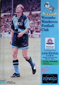 After a promotion winning debut season in the Football League in 1993/94, Wanderers headed for their first Third Tier campaign (then called the 'Second Division' with a degree of uncertainty on the playing and managerial front. Much of the pre-season news centred around whether Manager Martin O'Neill would extend his contract with the Wanderers. Speaking to the press in July 1994, Club Chairman Ivor Beeks was confident O'Neill would extend his current contract that ran until the end of the 1994/95 season. Beeks also said, "I think the budget we have got this year is realistic. Certainly the budget for players’ wages and bonuses compare well in the Second Division." The Chairman also put faith in O'Neill to develop the squad as the Manager saw fit, adding, "At the end of the day Martin is there to run a football team. We have not got a bottomless pit. He will get the right people to do the right job. I do get people asking if we have signed anybody new. I wonder why people want him to change things round. There are 7,000 to 8,000 managers on the terrace. But there is one fella who has picked the team for the last four years and look where we are." Steve Guppy's delay in agreeing a new one year deal with the Wanderers was one the major talking points regarding close season player movement at Adams Park. Guppy now had an agent and was aware that higher League clubs were chasing his signature. Guppy would eventually sign for Kevin Keegan's Newcastle United in a reported £150,000 deal. It was a deal that left O'Neill unhappy. There were also rumours of bids for defender Jason Cousins and midfielder Dave Carroll. Signings confirmed before the start of the season included Colchester United midfielder Nicky Smith. The 25 year old joined Wanderers in time for a four day visit to Germany and Holland to play a Combined Services side and Romanian touring team, Mideas. However, Smith would leave before the start of the regular season after he claimed he couldn't afford the upheaval of moving to High Wycombe. Confirmation of O'Neill agreeing a new deal with the Wanderers came on Wedneday 27th July 1994. O'Neill commented "I’ve had four marvellous years at Wycombe and we haven’t stopped climbing yet. Some people thought I was mad to turn down the Forest job last year, but now they know why I stayed. This club is every bit as ambitious as I am." Chairman Beeks added, "Now that we know he’s staying we can press ahead with our long-term plans for the club, safe in the knowledge that the playing side is in good hands," Wanderers pre-season friendly campaign back in the UK kicked off with a visit to Berkhamsted Town on Thursday 28th July 1994 where Tim Langford gave Wycombe a first-half lead but the hosts equalised five minutes from time when John Pedder curled home. Leicester City, newly promoted to the Premiership, were the visitors to Adams Park on Monday 1st August for another friendly. The appearance of Steve Guppy on the cover of the matchday programme coinceded with the news filtering thorugh of the wingers move to St James Park. The shock news somewhat overshadowed the game where David Lowe's 33rd minute strike was enough to secure a 1-0 victory for the visitors.Further pre-season games followed at Yeading on Thursday 4th August and Chesham United (lost 1-0) on Saturday 6th August and cuminating with the visit of Chelsea on Wednesday 10th August. The Premier League side, manahed by Glenn Hoddle, fielded a strong side in front of 4,763 crowd. New signing from Watford Paul Furlong gave the visitors the lead after just four minutes and Neil Shipperley added a second on 72 minutes when he lobbed substitute 'keeper Chuck Moussaddik. Wycombe got one back on 84 minutes as the light faded on an evening when Wanderers were out of action due to upgrading work. The Chelsea game saw the Wanderers debut of new signing Cyrille Regis. The 36 year old joined a free transfer following his release by Wolves and was the only new arrival confirmed prior to the start of the League campaign, Moving away from the Club in the close season saw Wanderers' legend Mark West finally say goodbye to the Club in the summer of 1994 with a move to Slough Town - recently relegated from the Conference to the Isthmian League. Hakan Hayrettin also moved to pastures new, with his best memory at Wycombe being his remarkable winner in the game at Preston in November 1993. The Football League fixtures released during June gave Wanderers a home meeting with Cambridge United on the opening day (Saturday 13th August 1994) - while the Football League Cup draw would see Wycombe take on Brighton & Hove Albion over two legs. Admission charges for league games at Adams Park for the 1994/95 season Ground admission - standing - Adults - £6.50 Ground admission - standing - OAP's and Juniors - £4.00 Seat in stand - Adults and OAPs - £9.00 Junior seat in stand (with Adult) - £4.00 Season Tickets Adult terrace - £130.00 Junior/OAP terrace - £80.00 Adult seat - £180.00 Junior/OAP seat - £162.00 Junior Family Stand seat - £92.00 The Bookies had Wanderers at 8-1 to be promoted and 18-1 to win the Division Two title. The favourites for the title were Birmingham City, Stockport County, Plymouth Argyle and Oxford United. Speaking before the start of the season, O'Neill said "I’ve spent 100 years as a player and five minutes as a manager and I hate pre-season friendlies. I’m glad they’re over. Saturday against Cambridge is when the real business starts." Wycombe’s chances of being promoted for the third season in succession would be hampered by the league structure. Only the champions would be automatically promoted and the next four teams play off for just one extra promotion place. O'Neill concluded, "We might need the fans here more than even they think this season, especially during touchy periods."