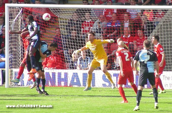 Wanderers came away from leaders Leyton Orient with a 1-1 draw but frustrated that they didn't grab all three points after Matt Bloomfield, making his first competitive appearance for Wycombe since the Play-Off Final defeat in May, was originally credited with giving Wycombe a first-half lead but the goal on 40 minutes was eventually officially credited to Gozie Ugwu. However, a mix up between Aaron Pierre and Sido Jombati on 66 minutes allowed Jay Simpson to smash the loose ball past Matt Ingram and salvage a point for the home side, who had won all their previous home games this season.Bloomfield's return to the Wycombe line-up came as Gareth Ainsworth went with a four man midfield that included a recall for Stephen McGinn but no place for Jason Banton. At the back Danny Rowe was missing after being 'in the wars' the previous week against Plymouth. Michael Harriman moved to right-back, with Jombati covering again in the centre of defence alongside Pierre. Paul Hayes remained absent with what is now being reported as an Archilles injury, with Sam Wood and Anthony Stewart the other faces still missing through injury. Backed by an enthusiastic backing in East London of over 800 fans, Wanderers caused problems for the home side within minutes of the start when Garry Thompson stabbed an effort over the crossbar. A Joe Jacobson free-kick swung in from the right of midfield saw Marcus Bean jump and see a header cleared from the dangerzone. Thompson then found himself with a chance from the left corner of The O's penalty area but the 'keeper got there first and McGinn just failed to catch the loose ball. Wanderers' purple patch of pressure continued when a Jacobson corner from the left was knocked on for Gozie Ugwu to see his header cleared. A relatively subdued home following finally had something to cheer about when a low cross by No.7 from the right bye-line caused panic in the Wycombe box but Harriman got a vital touch at the far corner of the six-yard box to alleviate the danger. No.4 headed over the resulting corner before Wycombe took the lead.Bloomfield was credited at the time with the opener on 40 minutes after apparently getting the last touch on Ugwu's close range effort following Jacobson's cross from the left. But it was Ugwu was awarded the goal after a decision by the 'dubious goals committee'. That goal was just reward for a positive Wycombe performance and Wanderers could have gone further ahead after the break when Pierre saw a shot blocked inside the area following another Jacobson delivery from the right. Luke O'Nein also continued to show his promise in midfield and almost forced a headed own goal from the home side when the ball was whipped in from the left. However, The O's were allowed back into the game when they broke from a Wycombe attack that had seen Thompson's cross from the right eventually cleared by the home defence. The ball was fed through the midfield where Pierre and Jombati both got tangled up trying to clear the danger before Simpson smashed home from 12 yards. Both sides then had chances to claim victory, Matt Ingram saving well with his leg to his left to deny Simpson on 78 minutes and Wanderers had a decent shout for penalty after Bloomfield looked to have been impeded in the box. Wycombe remain 4th in the table with 15 points, behind Plymouth (16), Portsmouth (16) and Orient (17). Full-time - Leyton Orient 1 Wycombe 1