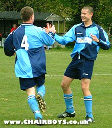 Pat Lynott congratulates Jonny Dixon after a goal against Rushden